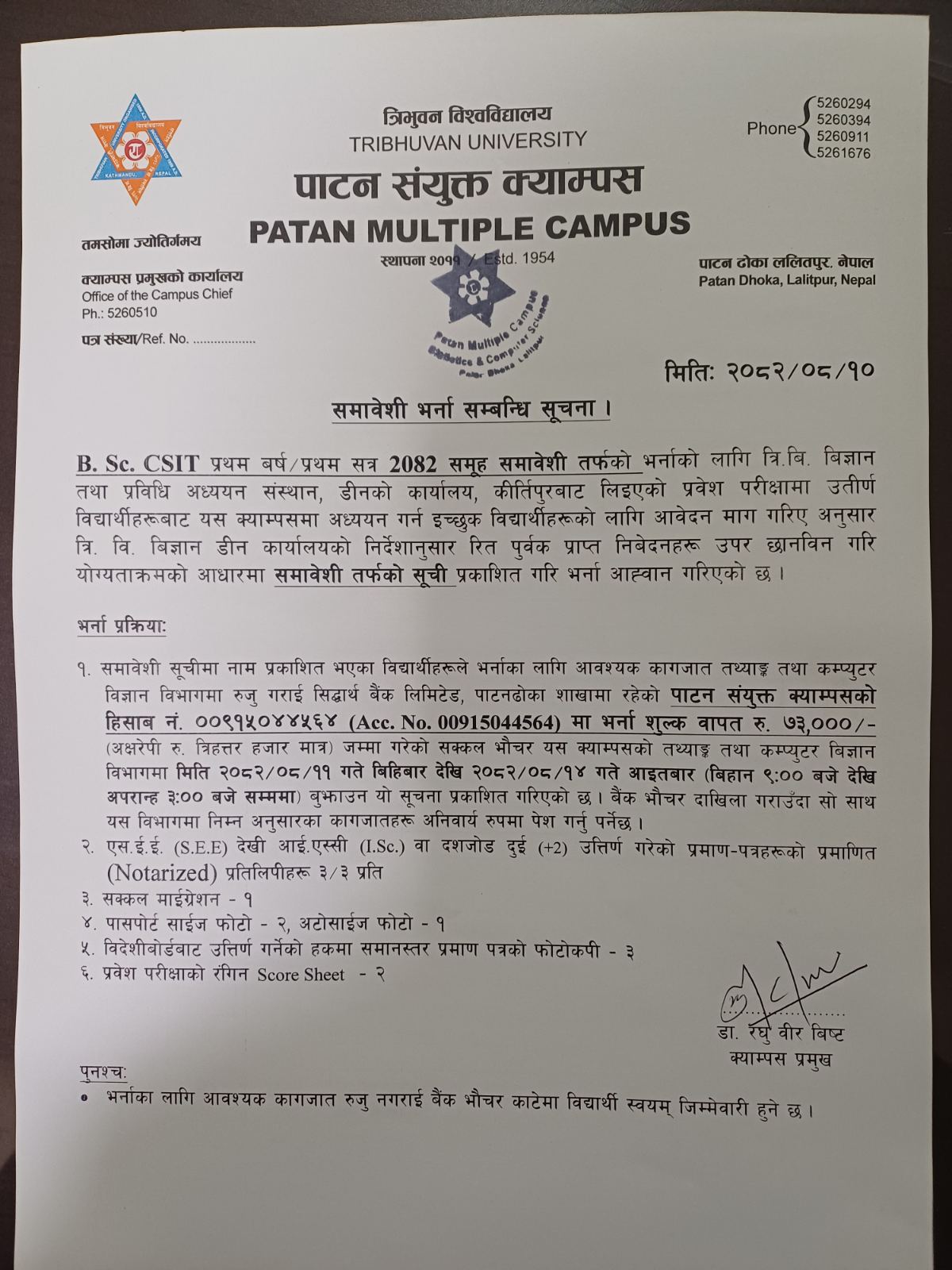BSc CSIT समावेशी भर्ना सम्बन्धी सूचना