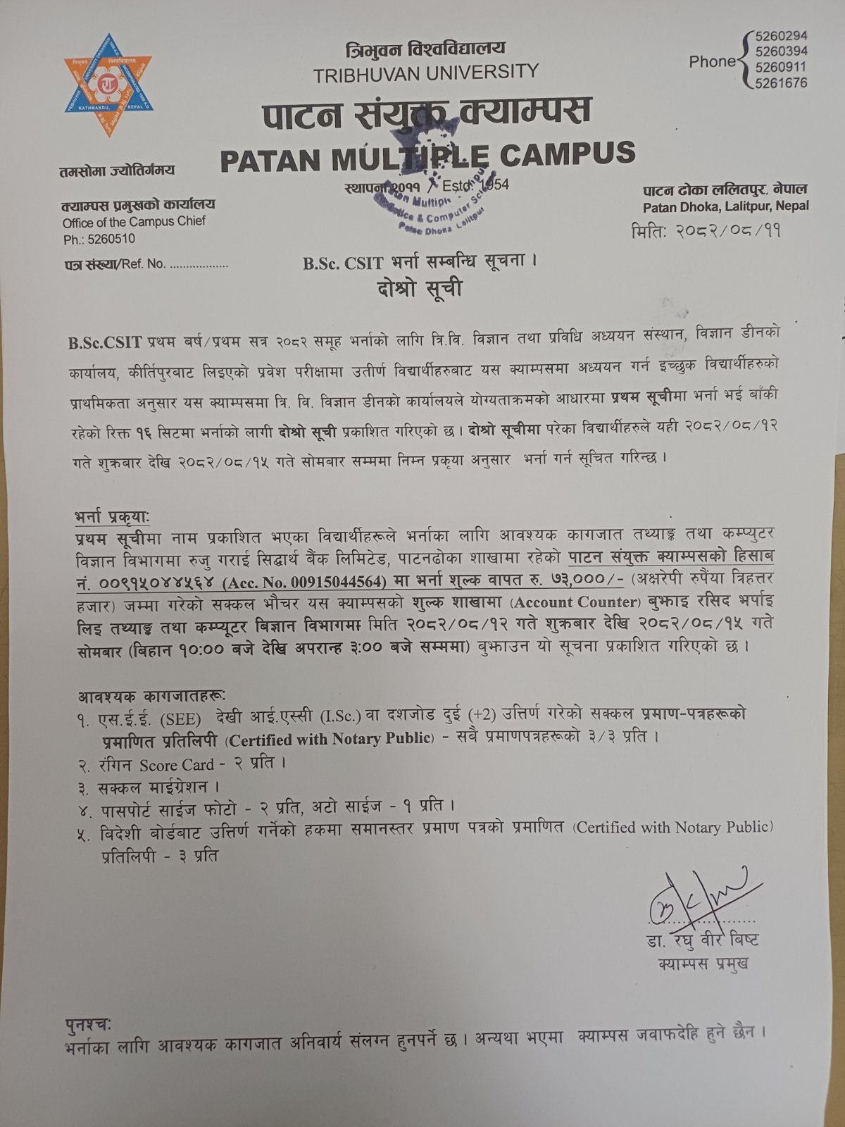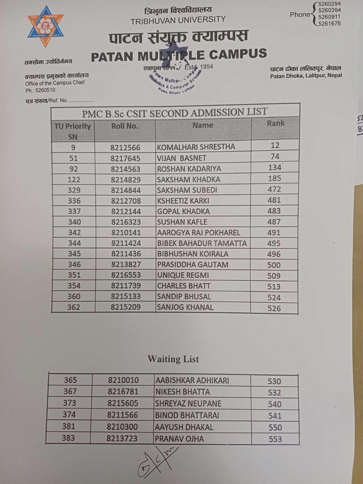 BSc CSIT Second Merit Lists