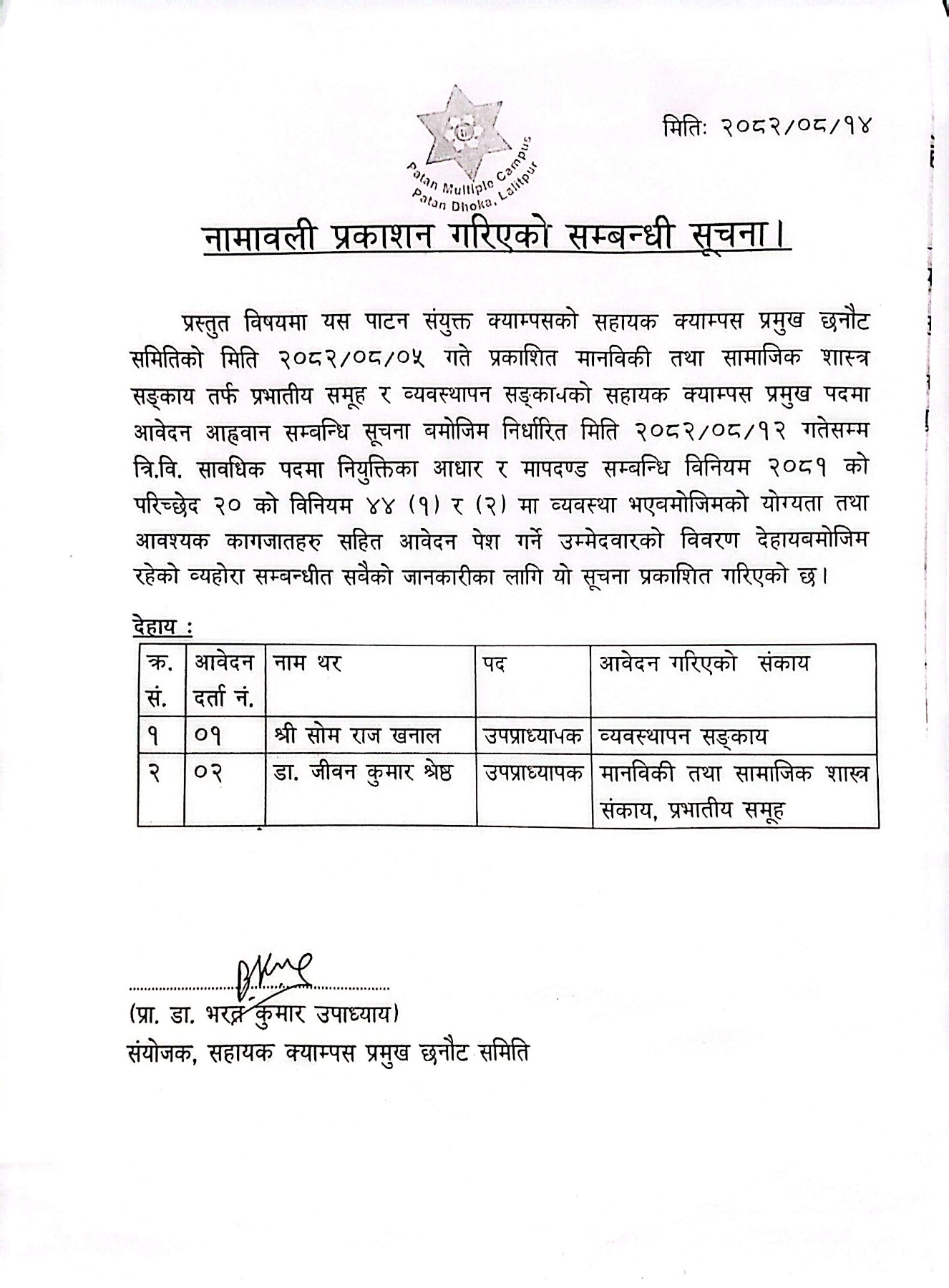 नामावाली प्रकाशनगरिएको सम्बन्धी सूचना