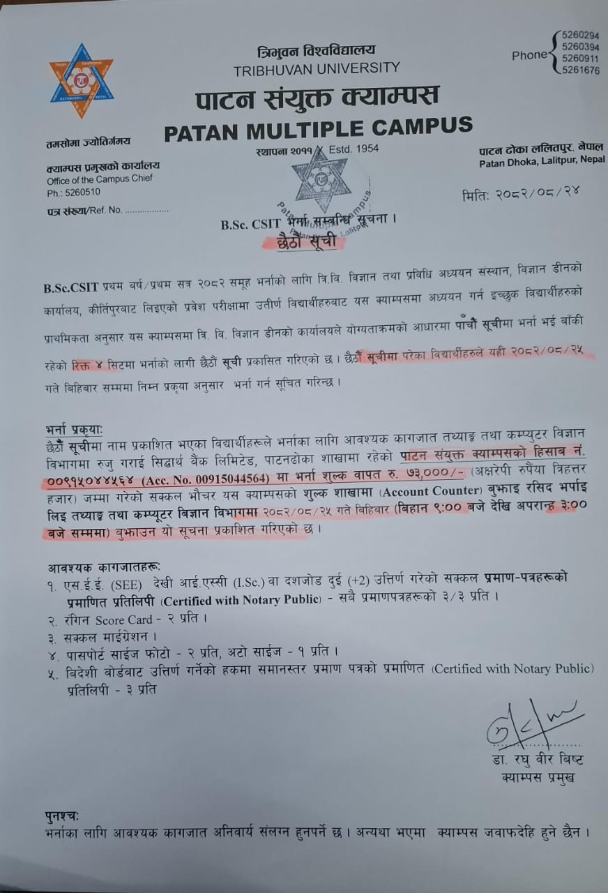BSc CSIT- 6TH MERIT LISTS