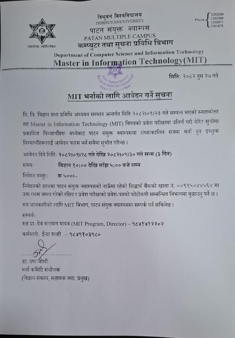 MIT भर्नाका लागि आवेदन फारम भर्ने सम्बन्धि सूचना