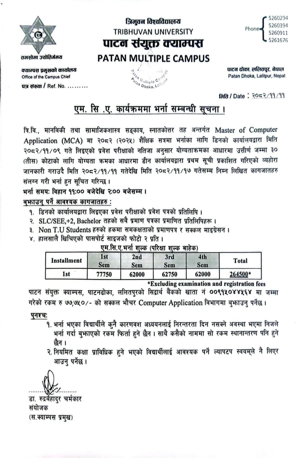 बि.सि.ए र एम.सि.ए कार्यक्रममा निशुल्क तथा जेहेन्दार बिद्यार्थीहरुको छात्रवृतिका लागि निबेदन बुझाउने सम्बन्धि सूचना