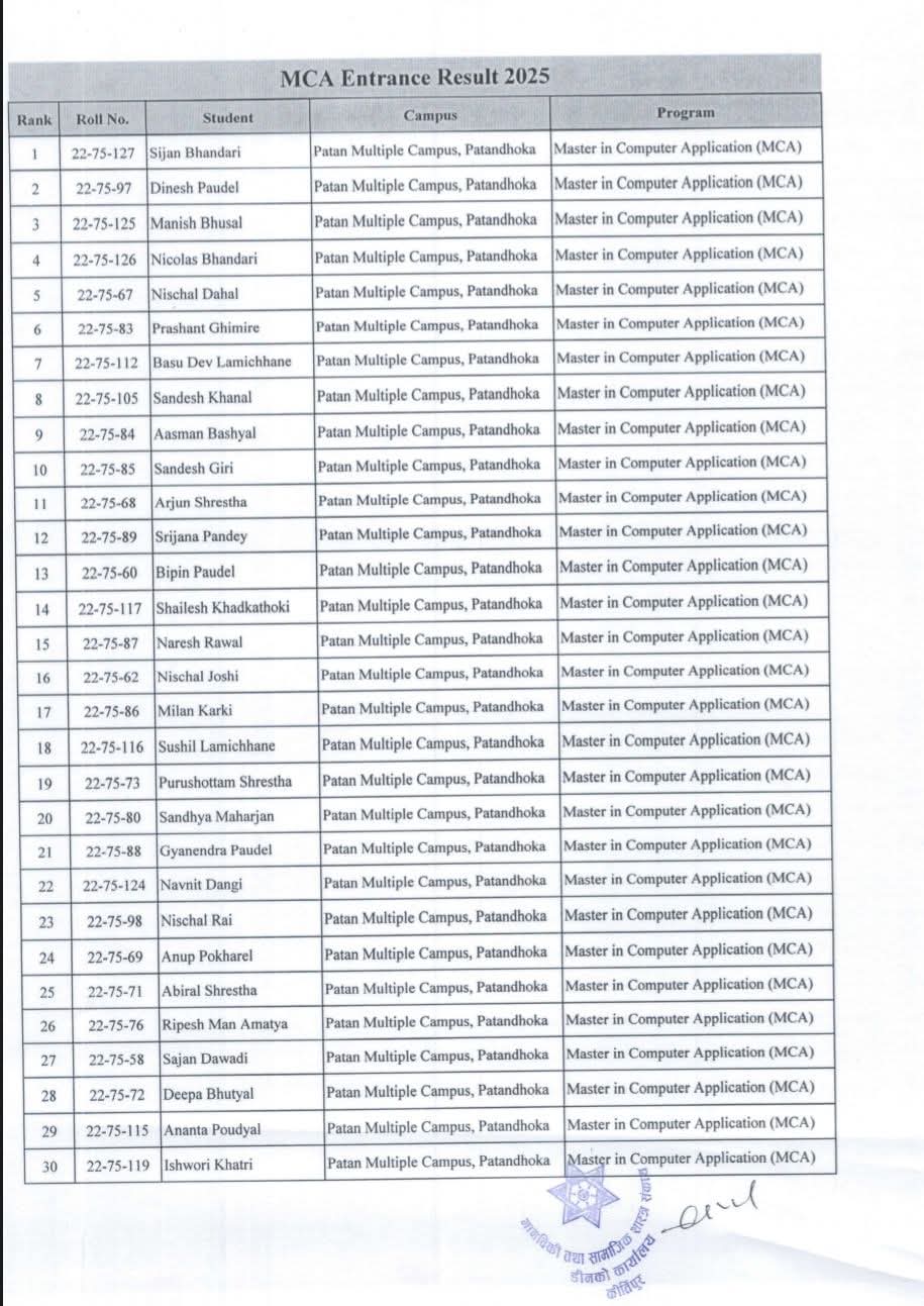 MCA-First Merit List for Admission-2082