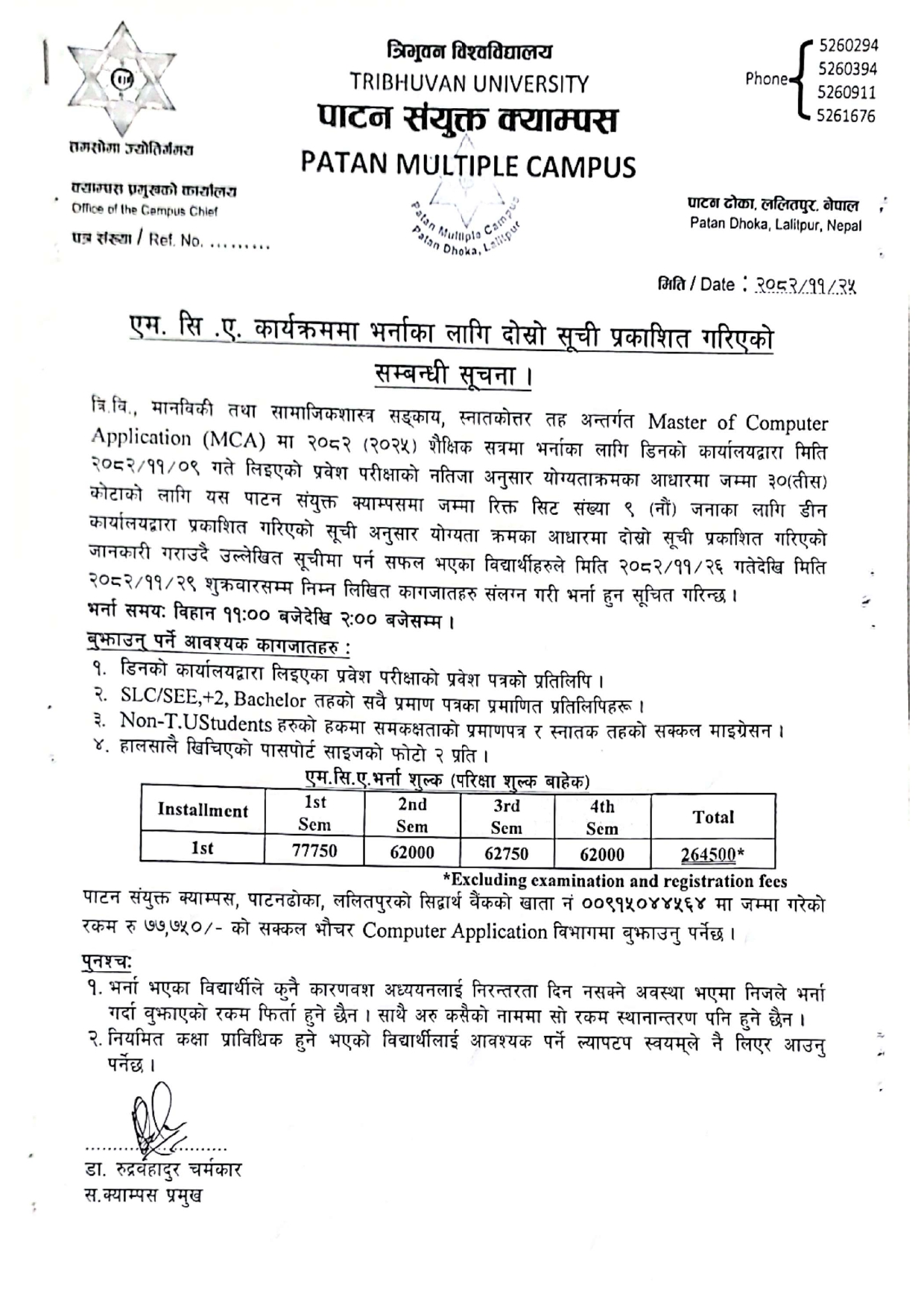 बि.सि.ए र एम.सि.ए कार्यक्रममा निशुल्क तथा जेहेन्दार बिद्यार्थीहरुको छात्रवृतिका लागि निबेदन बुझाउने सम्बन्धि सूचना
