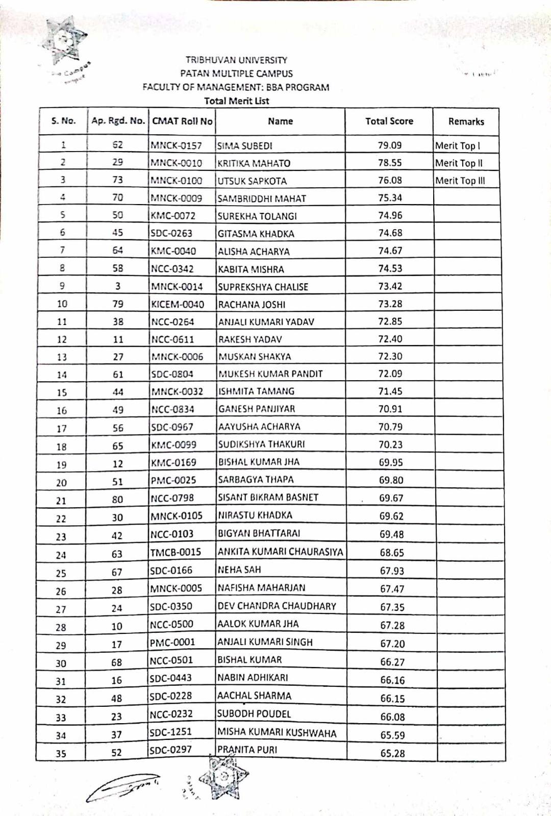 MCA-First Merit List for Admission-2082