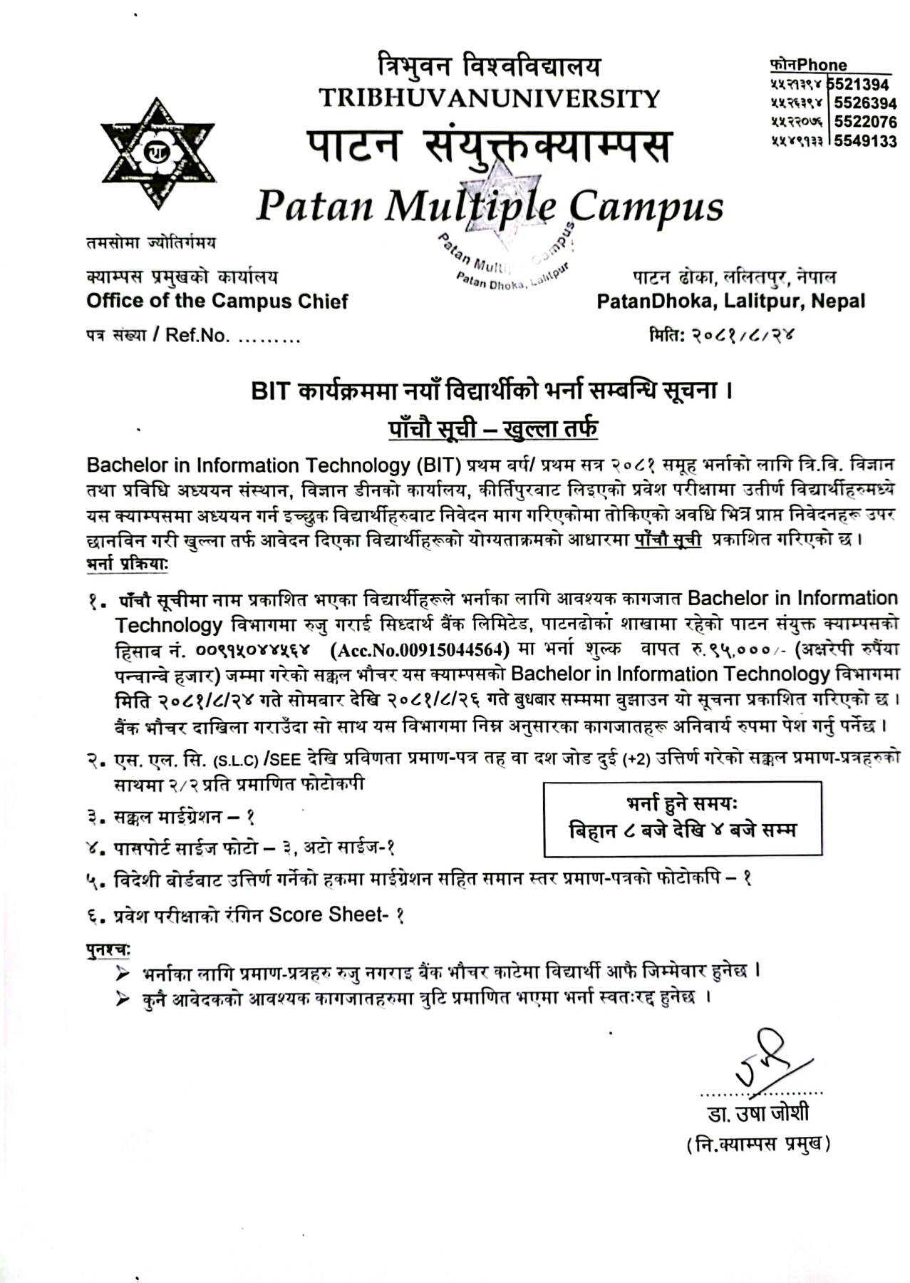 बि.सि.ए र एम.सि.ए कार्यक्रममा निशुल्क तथा जेहेन्दार बिद्यार्थीहरुको छात्रवृतिका लागि निबेदन बुझाउने सम्बन्धि सूचना