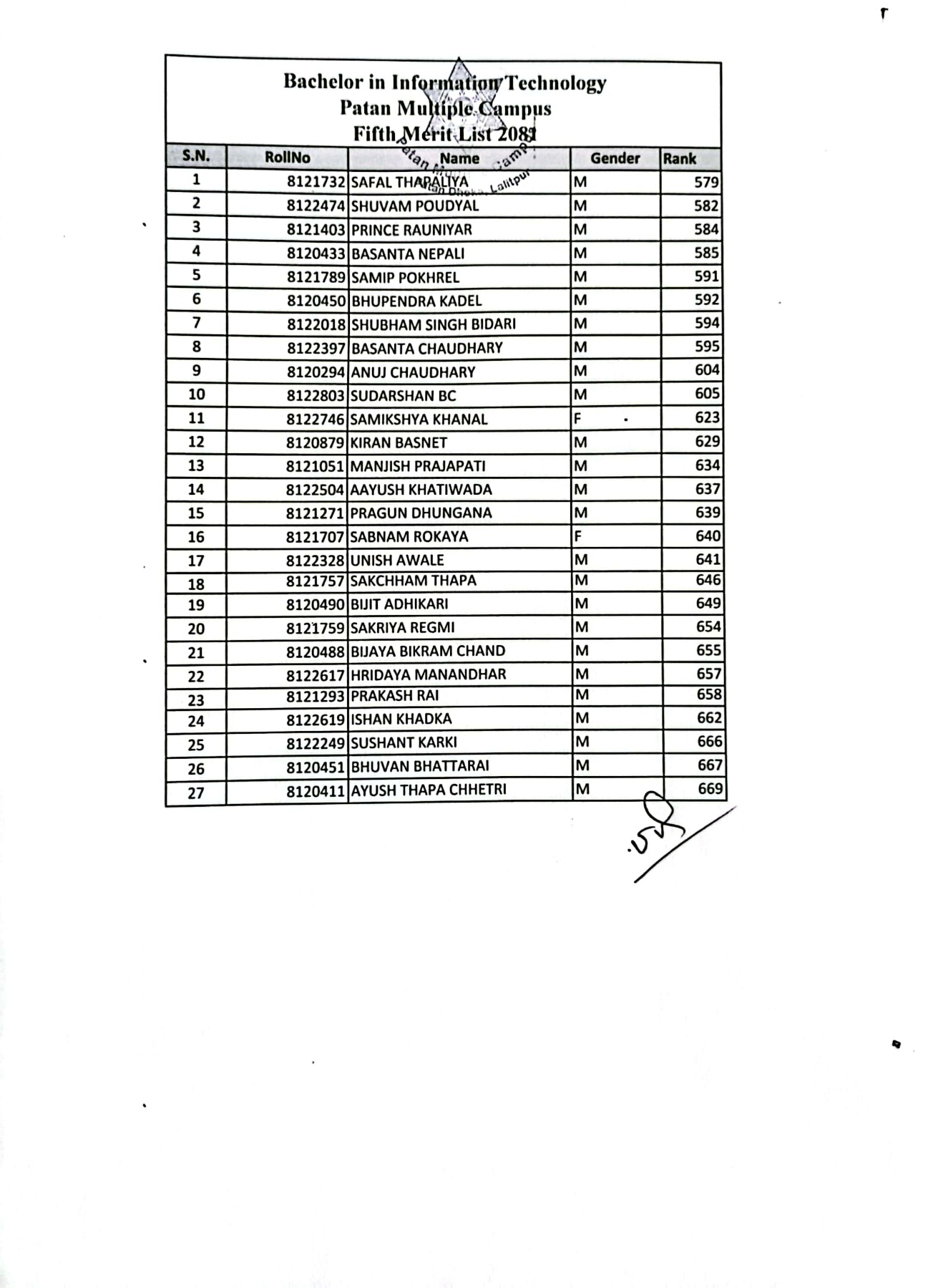 MCA-First Merit List for Admission-2082
