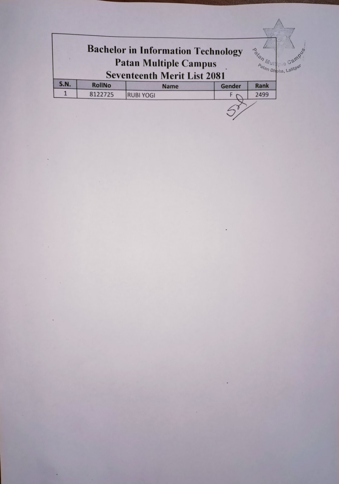 MCA-First Merit List for Admission-2082