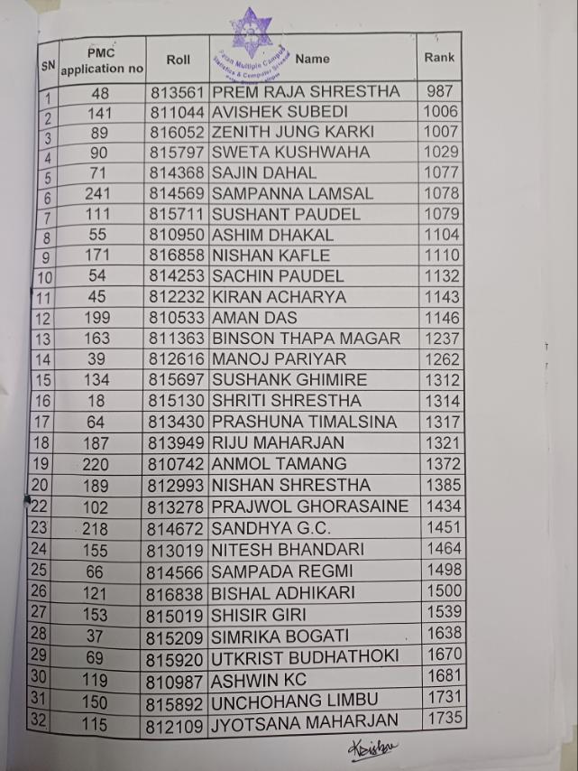 MCA-First Merit List for Admission-2082
