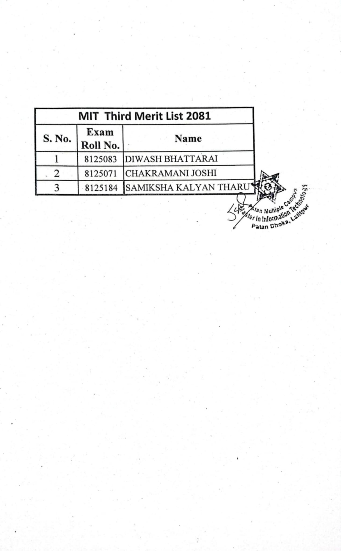 MIT 3rd Merit Lists for Admission