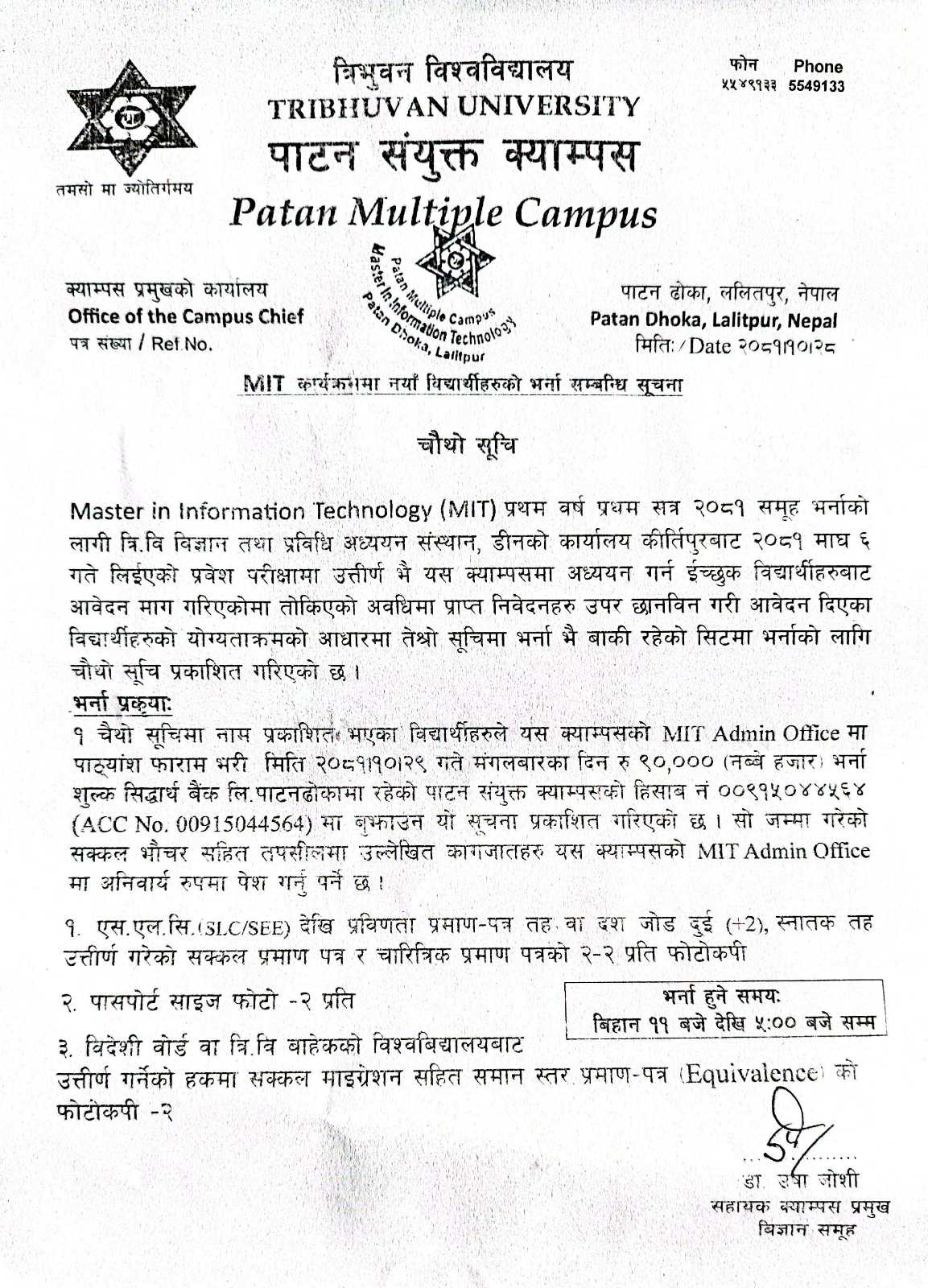 बि.सि.ए र एम.सि.ए कार्यक्रममा निशुल्क तथा जेहेन्दार बिद्यार्थीहरुको छात्रवृतिका लागि निबेदन बुझाउने सम्बन्धि सूचना