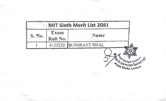 MIT 6th Merit List for Admisison