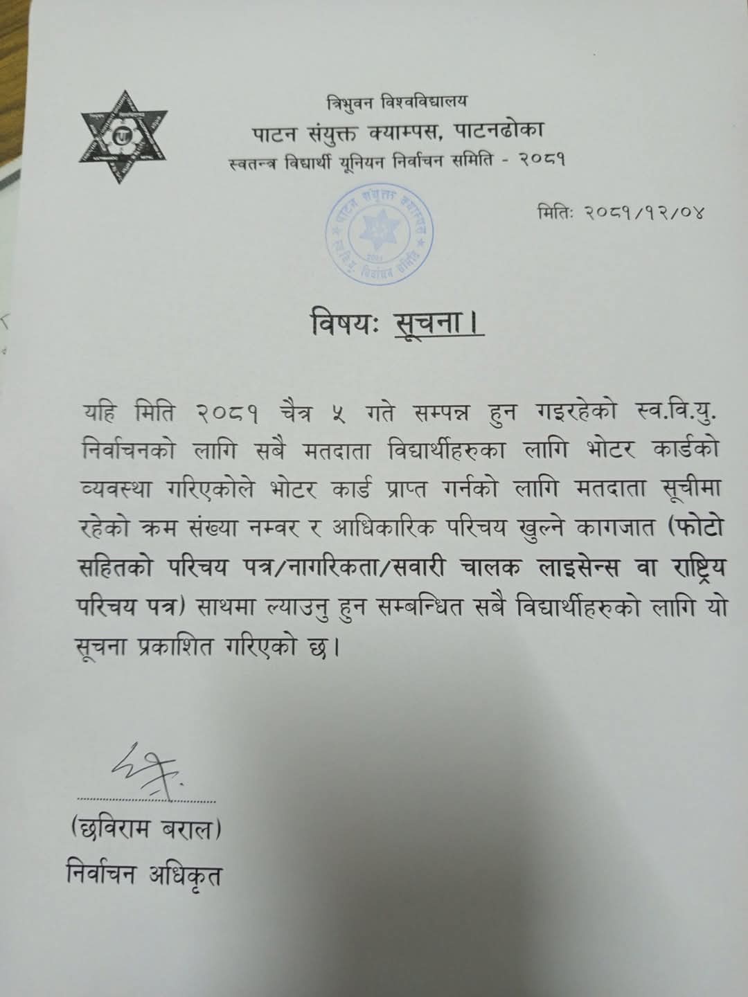 बि.सि.ए र एम.सि.ए कार्यक्रममा निशुल्क तथा जेहेन्दार बिद्यार्थीहरुको छात्रवृतिका लागि निबेदन बुझाउने सम्बन्धि सूचना