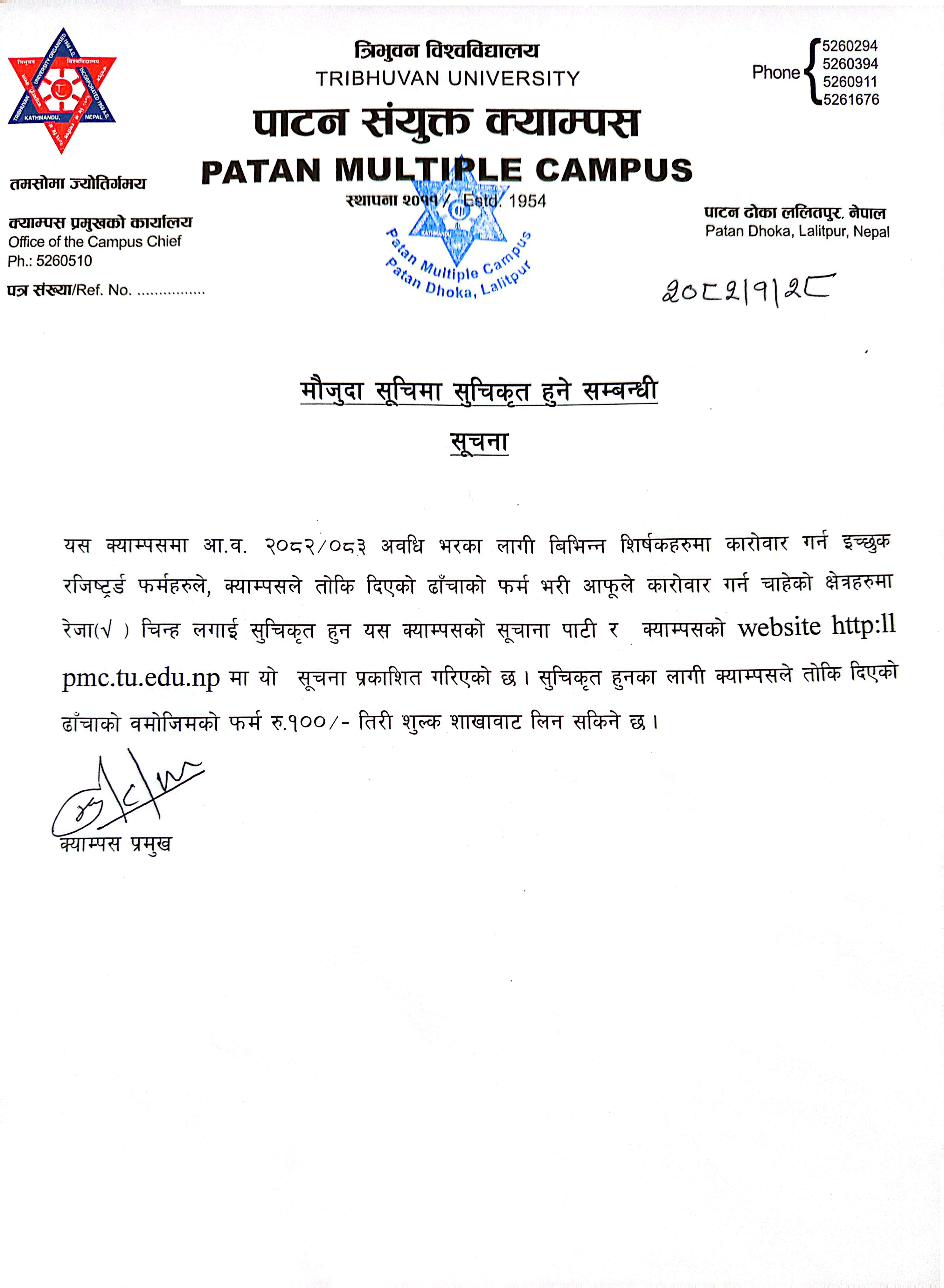 बि.सि.ए र एम.सि.ए कार्यक्रममा निशुल्क तथा जेहेन्दार बिद्यार्थीहरुको छात्रवृतिका लागि निबेदन बुझाउने सम्बन्धि सूचना
