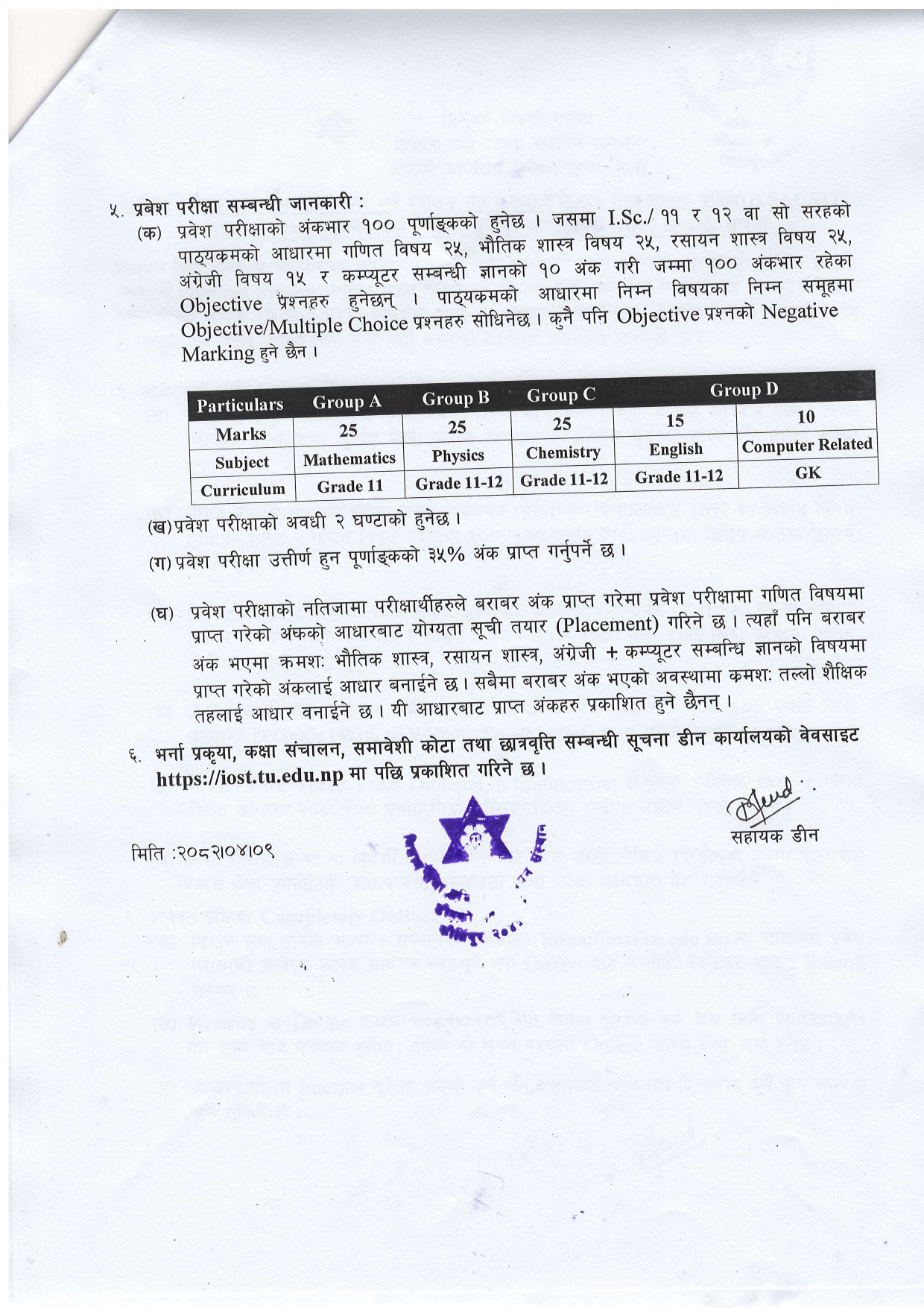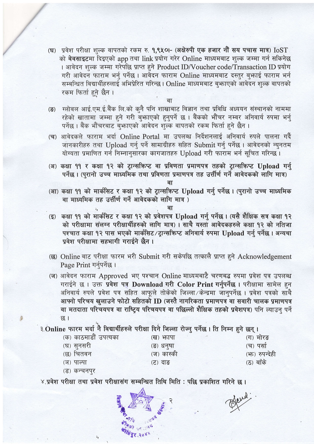 B.Sc CSIT ENTRANCE FORM NOTICE 2082