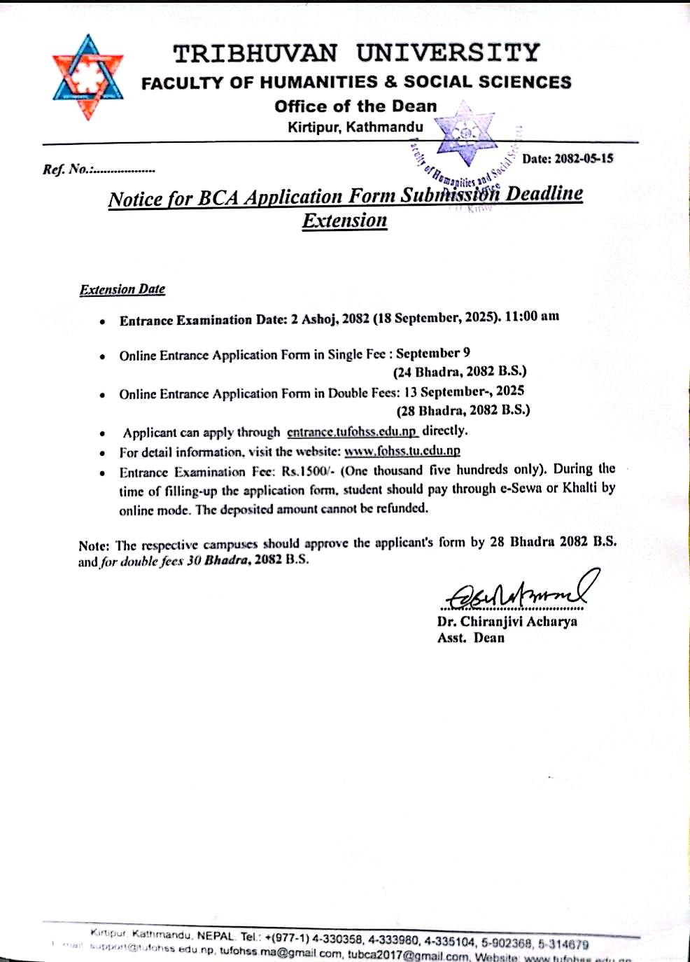 बि.सि.ए र एम.सि.ए कार्यक्रममा निशुल्क तथा जेहेन्दार बिद्यार्थीहरुको छात्रवृतिका लागि निबेदन बुझाउने सम्बन्धि सूचना
