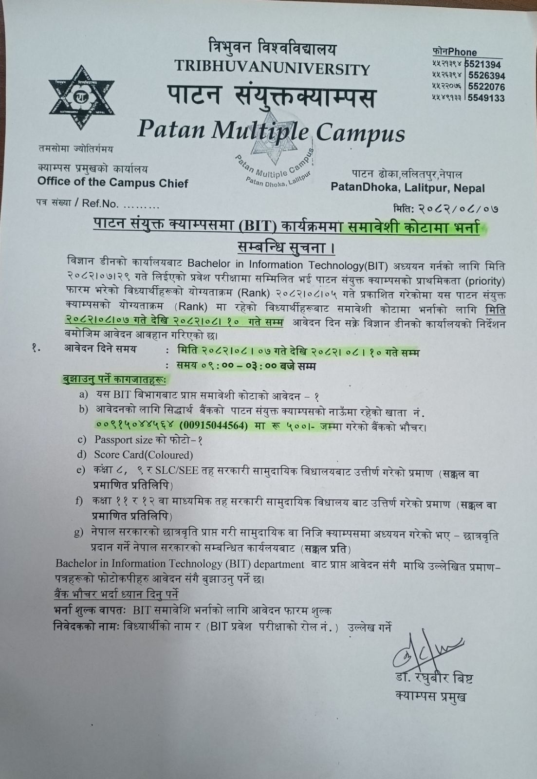 बि.सि.ए र एम.सि.ए कार्यक्रममा निशुल्क तथा जेहेन्दार बिद्यार्थीहरुको छात्रवृतिका लागि निबेदन बुझाउने सम्बन्धि सूचना