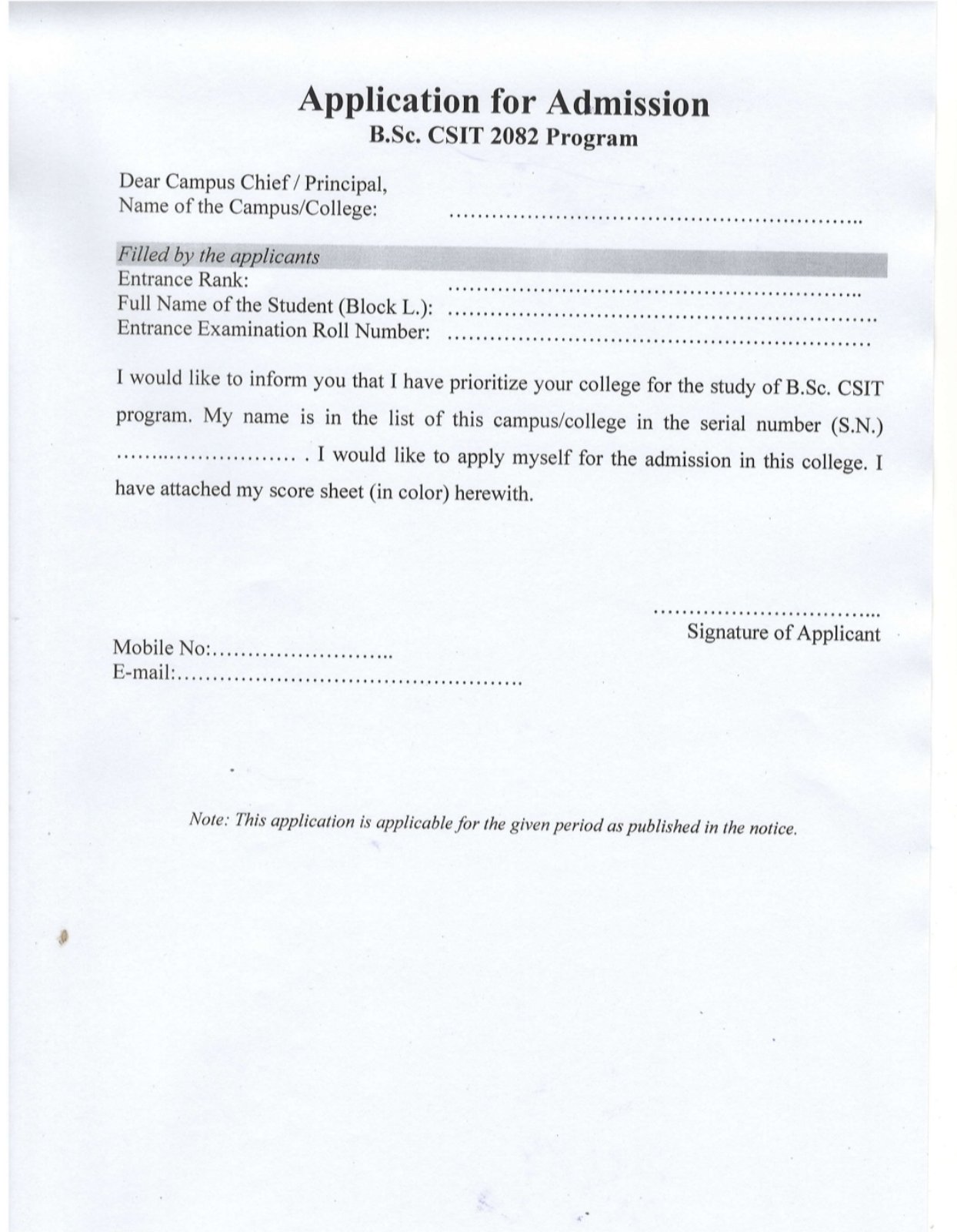 Bsc CSIT 2082-Application Notice for Second Merit List(Application Form is attached below)